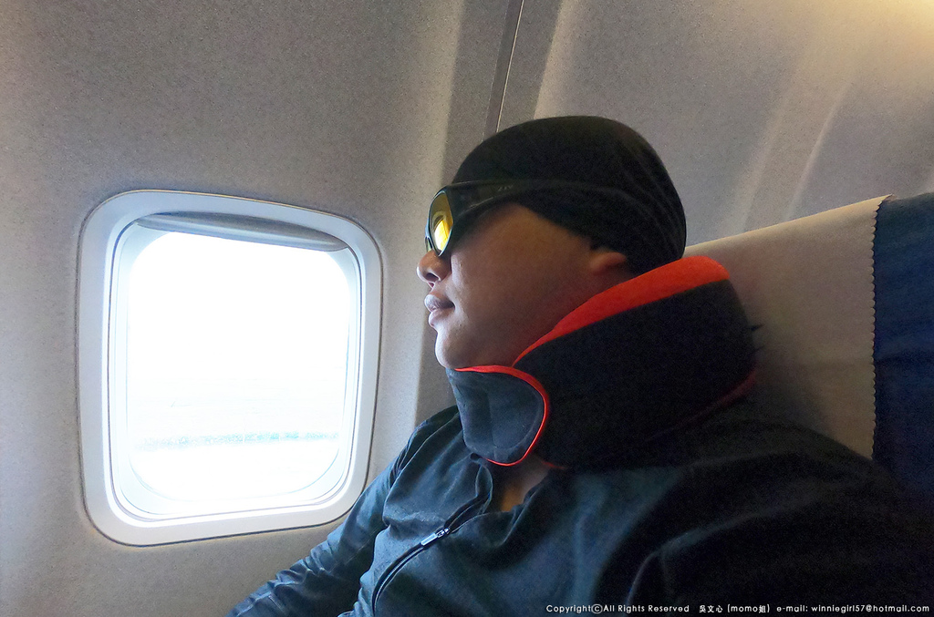 記得我第一次在飛機上使用戴上它時,大叔偷偷笑我說怎麼戴一個這麼大的頸枕。