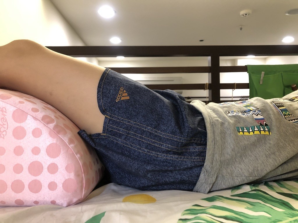 看看我腿上藍一條、紫一條的就知道我有多依賴台腿枕了!