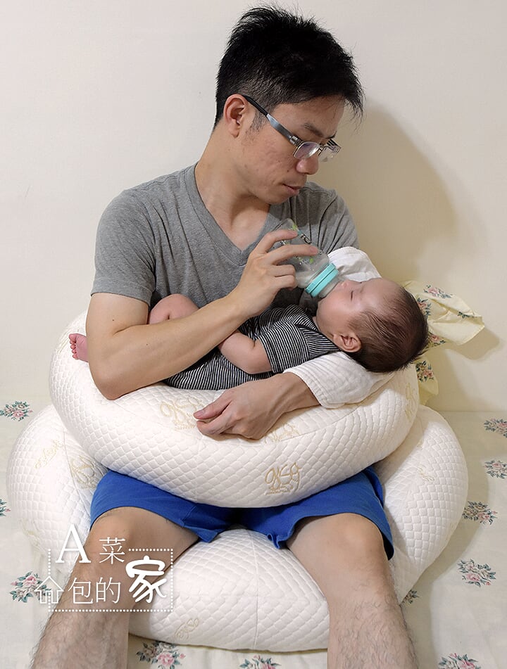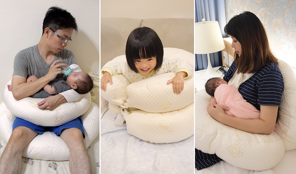 Baby出生以後媽媽親餵,因為哺乳護嬰枕的厚度符合人體工學,對手肘和肩頸都能有良好支撐,讓我整個人很放鬆地哺餵嬰兒。