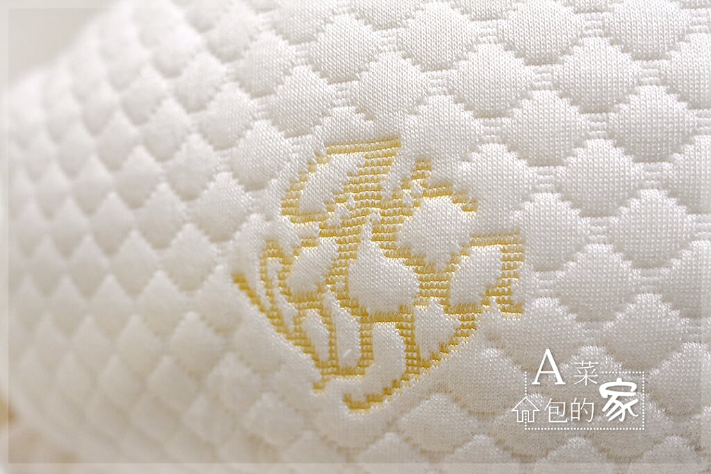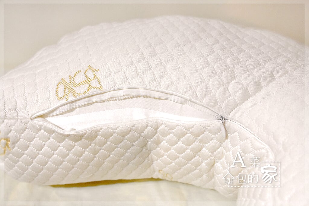 其實這就是枕頭套了,表布是TENCEL®天絲纖維材質,米白色格菱紋繡著GreySa格蕾莎的品牌英文,摸起來質感有點涼涼的,很滑順。