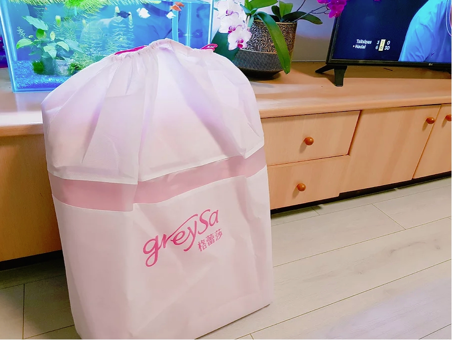 剛到貨的greysa格蕾莎抬腿枕,用很大的防塵袋保護著