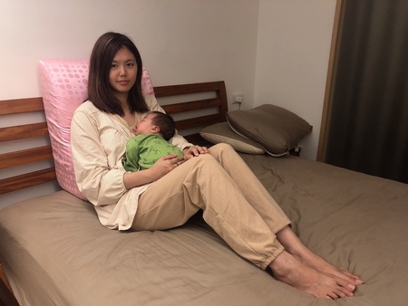 有了靠背的支撐,在床上抱寶寶一點都不費力
