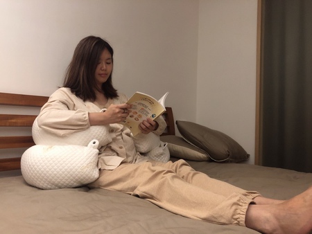 背部柔軟舒適又放鬆~高度也剛剛好,看書時手可以剛好靠著
