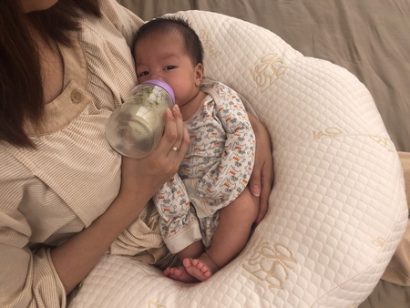 手部有了支撐後,讓餵奶變得很輕鬆!