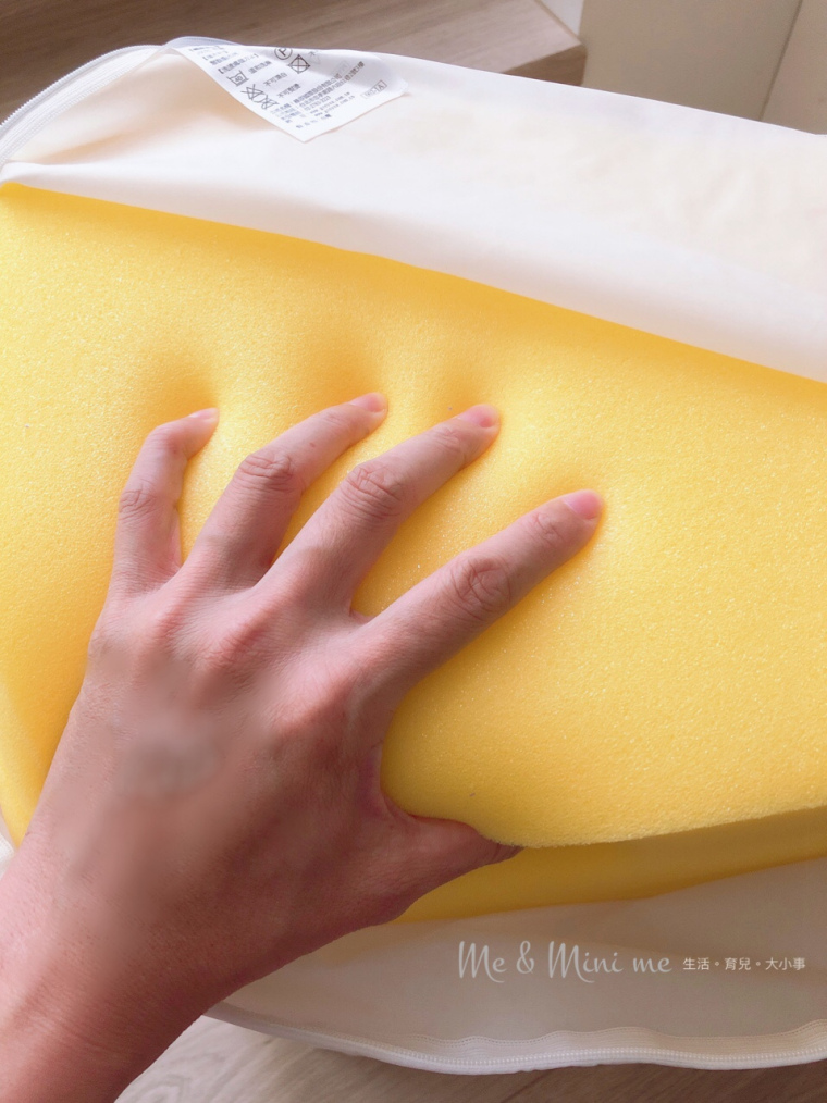 最裡層的泡棉填充物材質枕心是一體成型的高密度海綿,回彈力好、躺臥壓都能輕易變回原型,也不容易因為用久了整個塌陷!