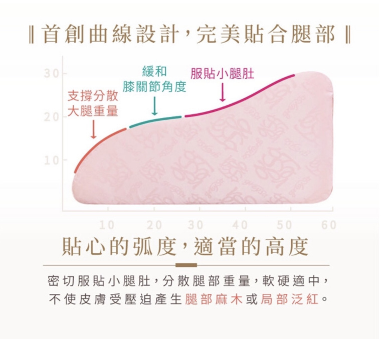 海綿體軟硬及高度適中,不使皮膚受壓迫產生腿麻及局部泛紅。