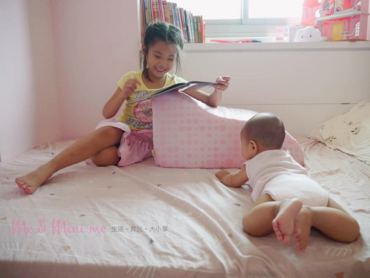 還可以唸書給妹妹聽(媽媽覺得離好日子不遠,都要感動落淚了~)