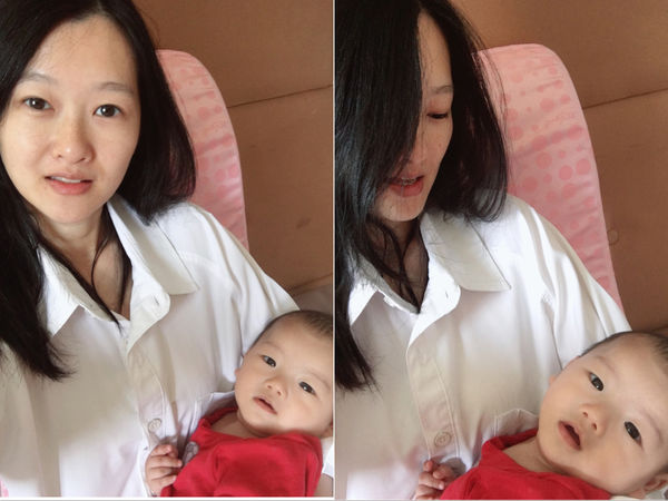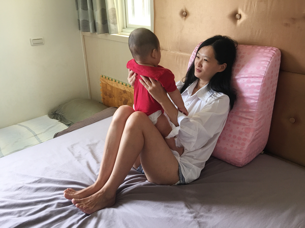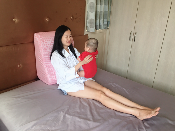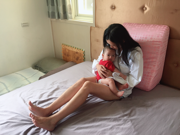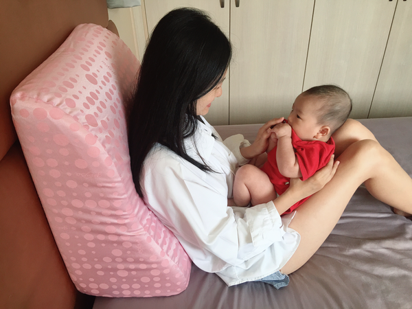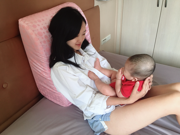 而且這個抬腿枕,哺乳的時候也可以用,像這樣抱著,就可以餵食嘍~Fa弟:「把拔~你不要羨慕我被抱著」