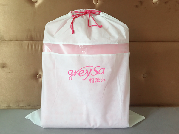 白色典雅的束口袋,以半透明可看到內容物的包裝設計,非常氣質,從包裝就有種舒適感,感覺也好適合送人。