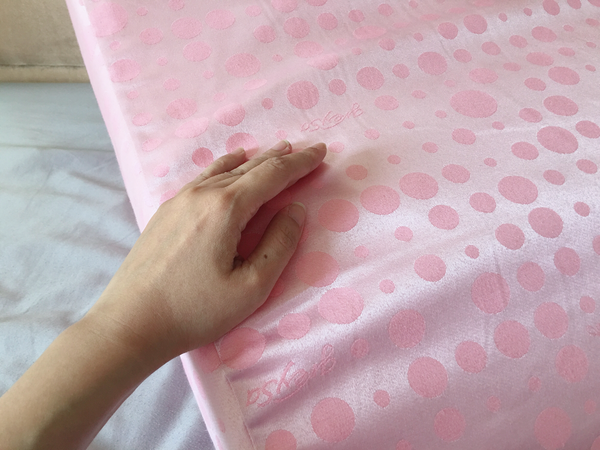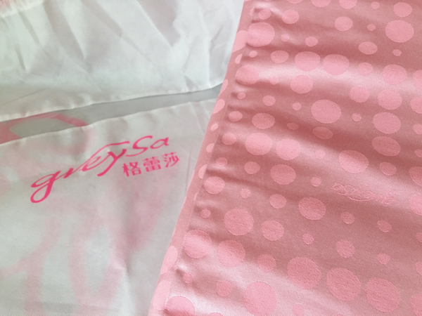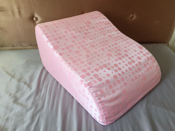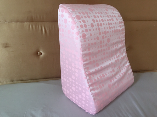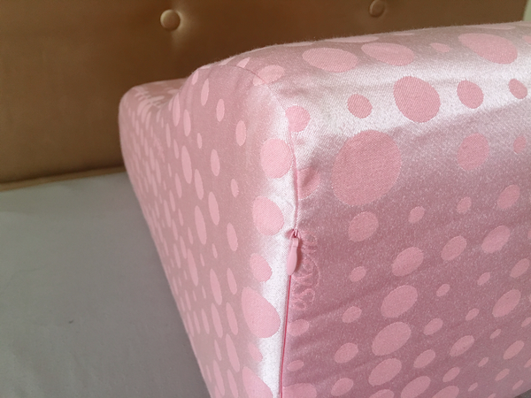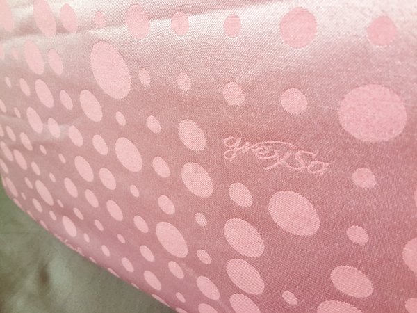 躺著放與立起來放各有功能,可以依照需求看怎麼使用,圓點表布在陽光下有點反光銀屬色澤。這是greySa格蕾莎抬腿枕最新一款的花色~