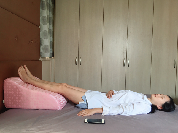 特別補充一下,以下照片才是正確使用方式,記得腳踝要在枕頭的最前面,而且不超過30分鐘為宜,才是最好的使用。