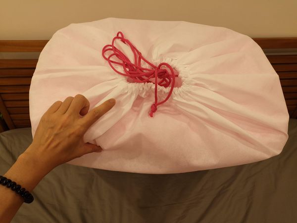 上面有繩子可束綁,隔絕灰塵、髒物,此商品共出四款顏色,Ms珊小姐選擇粉紅圓點~