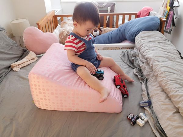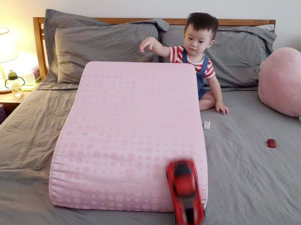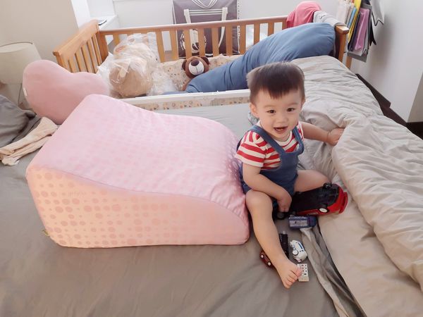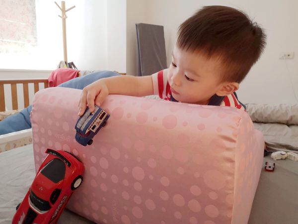 可當枕頭使用,趁兒子睡覺時,自己也瞇一下,真的好舒服,自拍或看手機也都很方便~