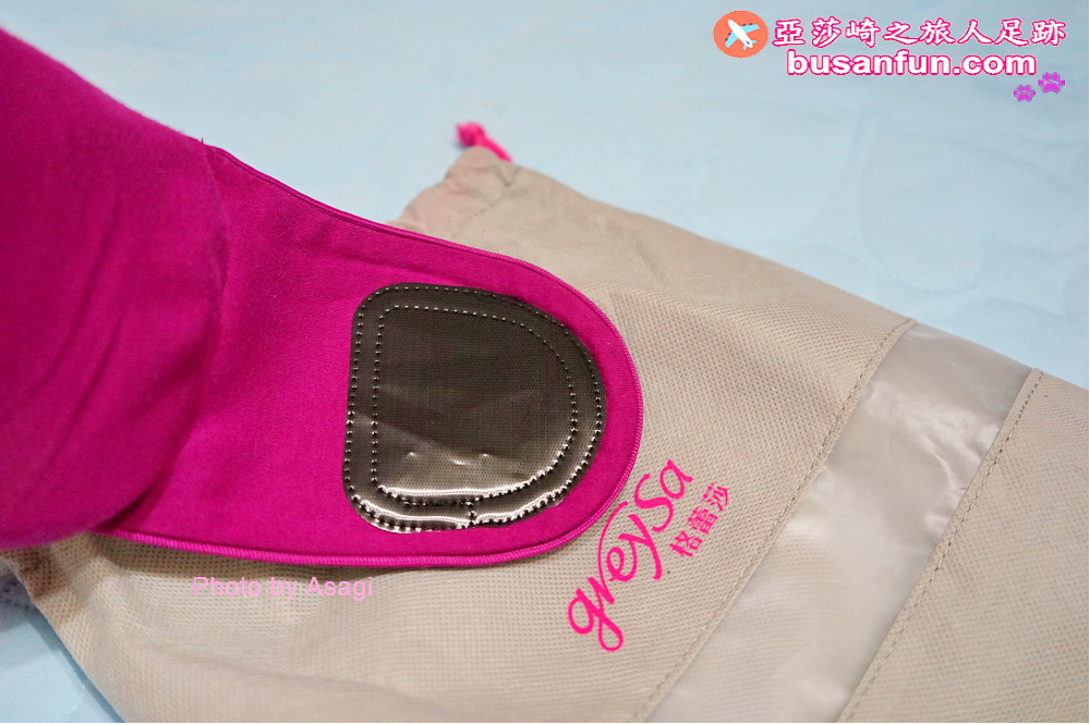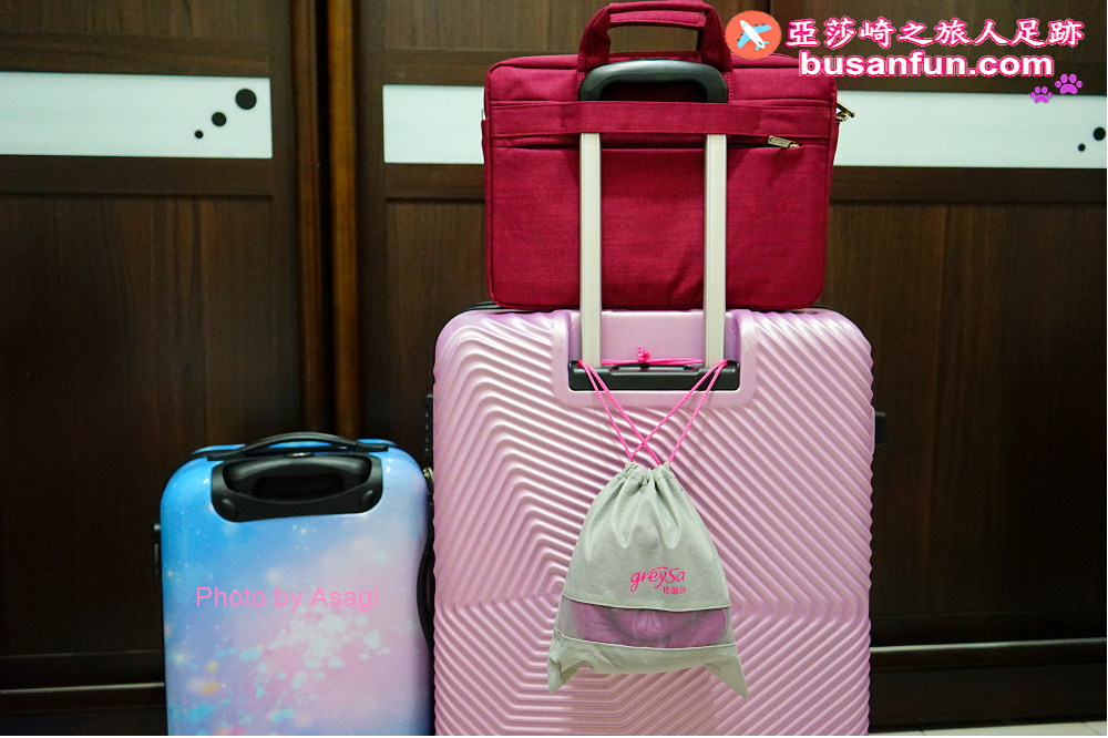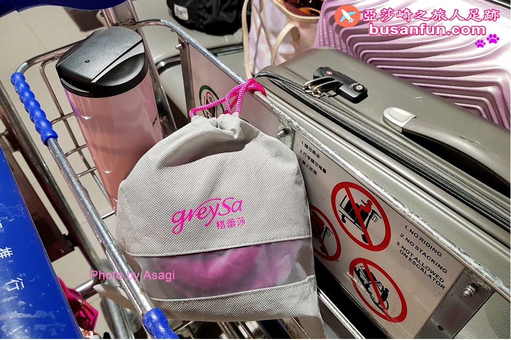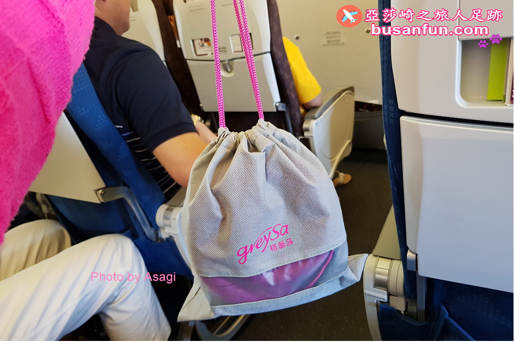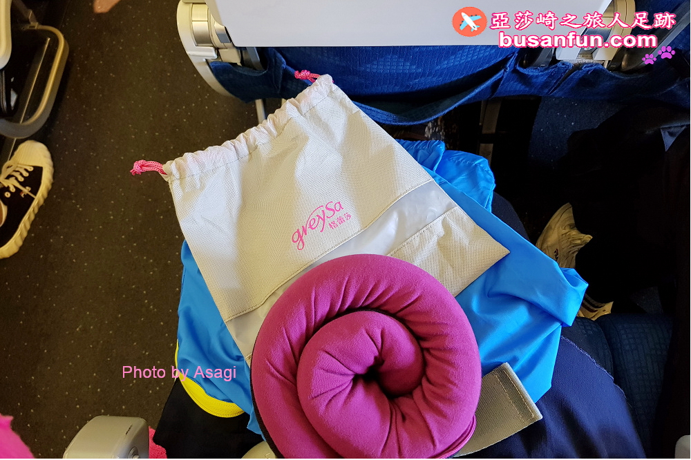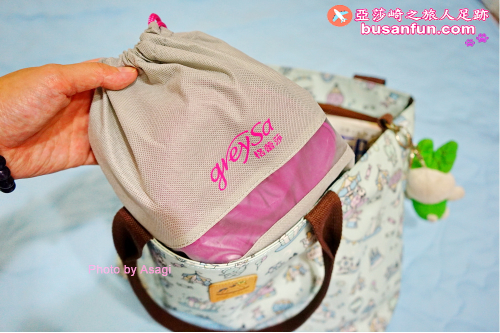 格蕾莎旅行頸枕有個專用的束口袋,托運完行李箱之後,我就直接把格蕾莎旅行頸枕掛在手邊,帶上飛機。