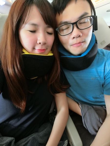 過往搭飛機通常睡不太好,總是靠在老公肩上也不是辦法,
