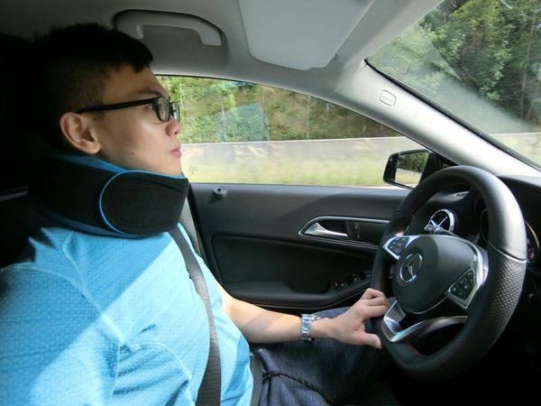 老公開車時也一定要使用格蕾莎的大藍頸枕,減緩開車的疲勞~