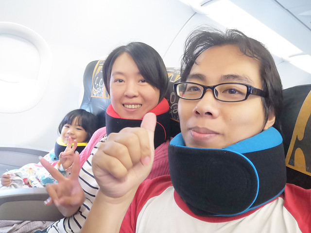 PS因為包覆頸部功用,一開始就帶上反而會有悶熱感,建議飛到上空冷氣強些在帶,較不會悶熱不舒服。