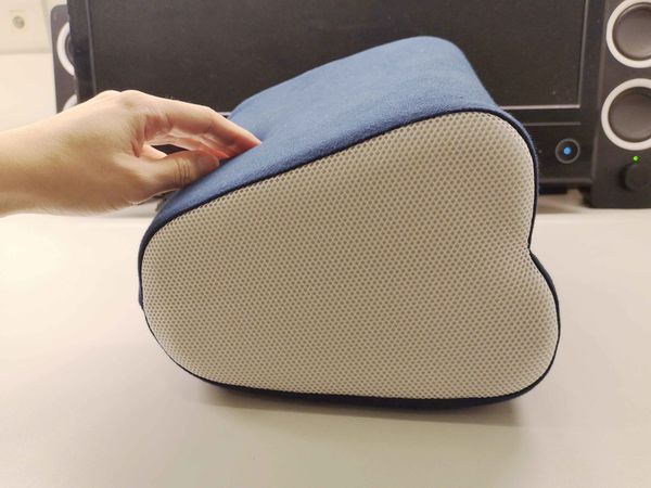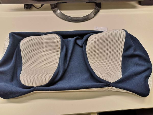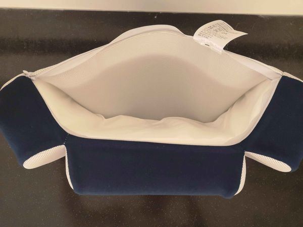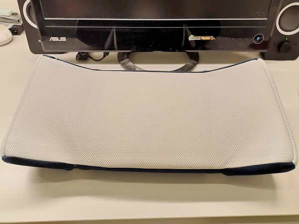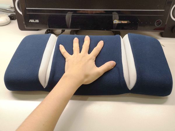 獨家專利設計,主體雙層結構,支撐力和柔軟度兼具,(展開)尺寸43cm X 20 cm X 8cm,表布外層採萊卡布(21%彈性纖維、79%尼龍),內裡使用萊卡布(12%彈性纖維、88%聚酯纖維),質感摸起來很舒服親膚、柔軟,不會有刺刺的感覺,兒童使用也OK~