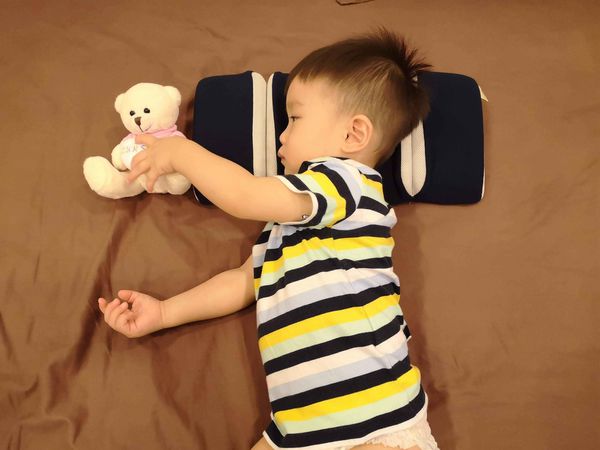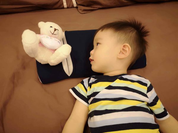 材質非常舒服柔軟,可當兒童枕頭使用,Jason睡前要和熊熊一同睡覺,分享一小塊枕頭給熊熊睡,同時也在學習分享~