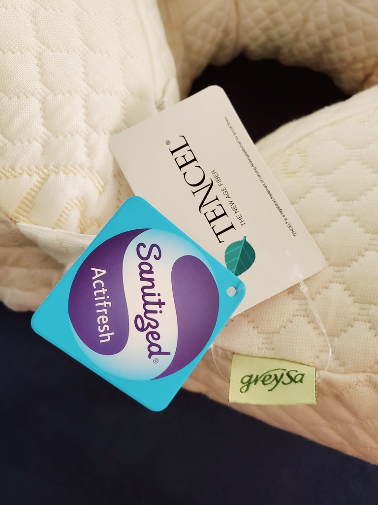 MIT台灣製造的GreySa格蕾莎哺乳護嬰枕,認證枕套的部分採用國際品牌TENCEL®天絲纖維材質及瑞士抗菌技術OEKO-TEX,材質柔軟親膚且抗菌防螨、吸溼透氣,可以均勻的吸收水分,一般棉的吸水量還低於天絲的50%,且天絲TENCEL®是天然環保的材質,能99.6%有效回收利用