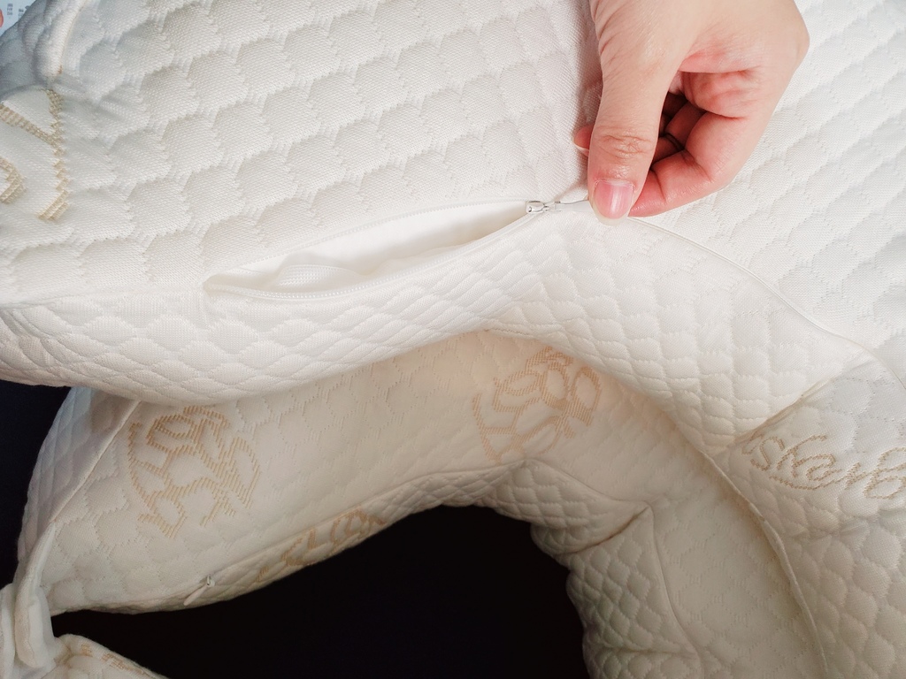 枕芯的填充物採用100%A級長纖聚酯纖維,支撐性很好又柔軟,且枕套是做隱形拉鍊,除了美觀外,也不會因為在抱的過程中刮到自己或是寶寶嬌嫩的肌膚
