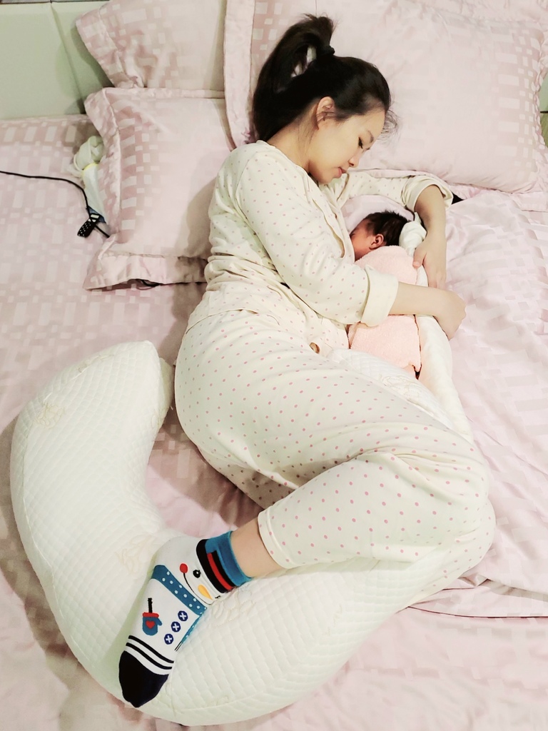 躺著親餵的時候,腳夾著抱枕,不像夾著棉被那麼熱又有更好的支撐效果,雖然是冬天,但我月子喝太多補湯,晚上都會流汗,很怕熱