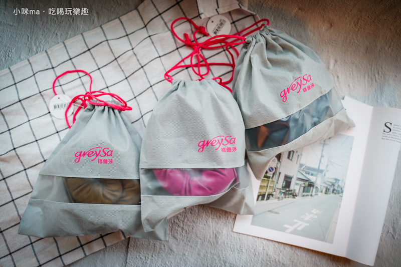 我自己很喜歡格蕾莎旅行頸枕的包裝,每一顆枕頸都用了專屬的束口袋裝起來,收納非常方便