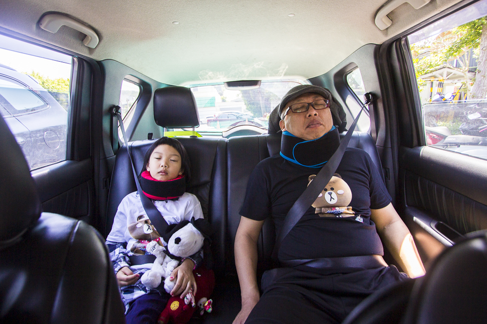 史努比家的特色就是坐車就想睡,無論是搭飛機、搭高鐵、自行開車…