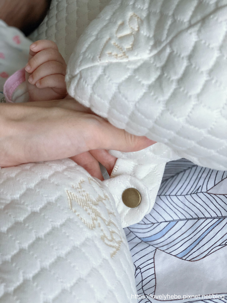 兩個哺乳枕的扣子扣起來