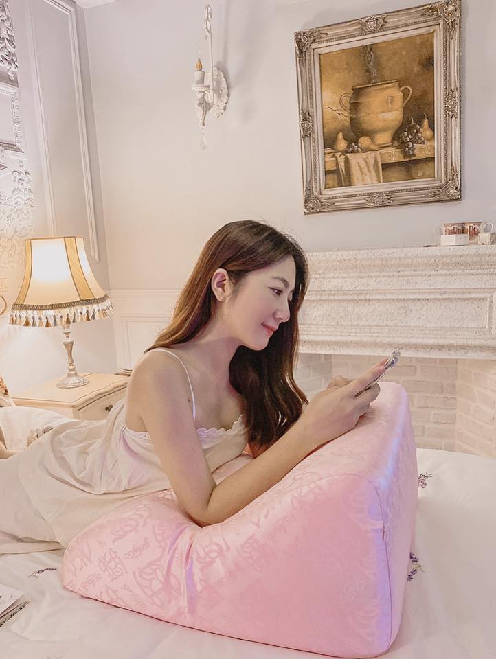 因此抬腿枕我選了帶點光澤感的淡粉色