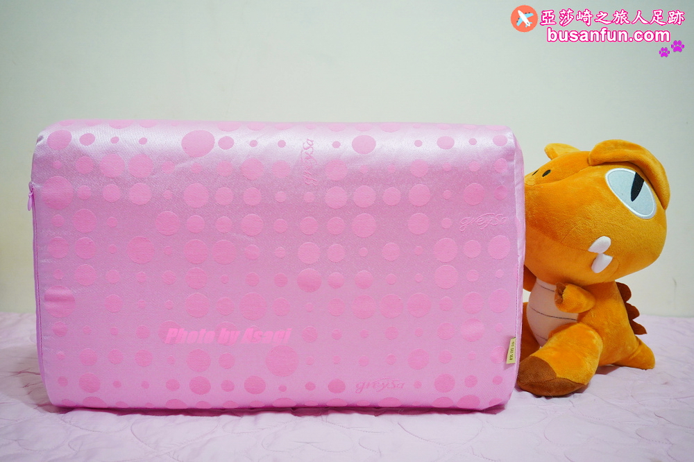 GreySa格蕾莎推出的【抬腿枕】有各種款式顏色,身為粉紅控的^^亞莎崎選擇了[粉紅圓點]抬腳墊。