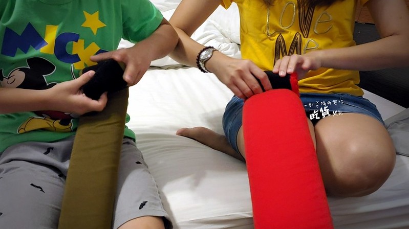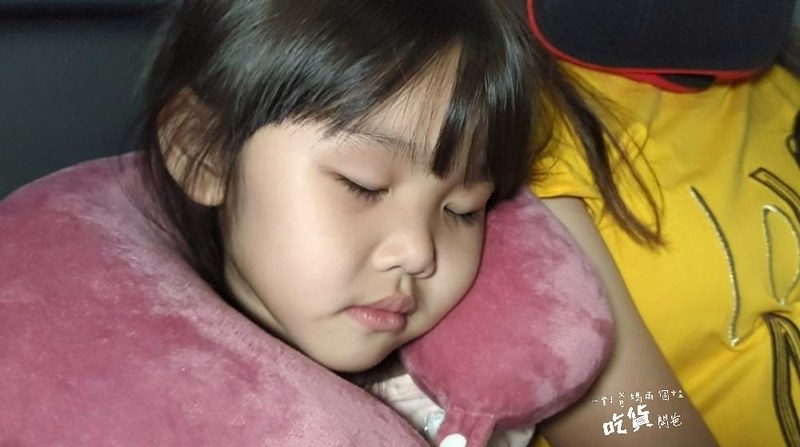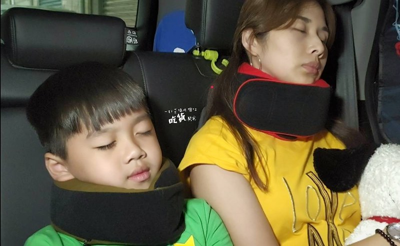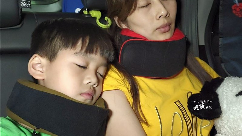 當天出遠門遊玩,這一回到民宿,孩子們跟孩子的媽,沒多久就直接把頸枕當枕頭靠在頭上就睡著了。