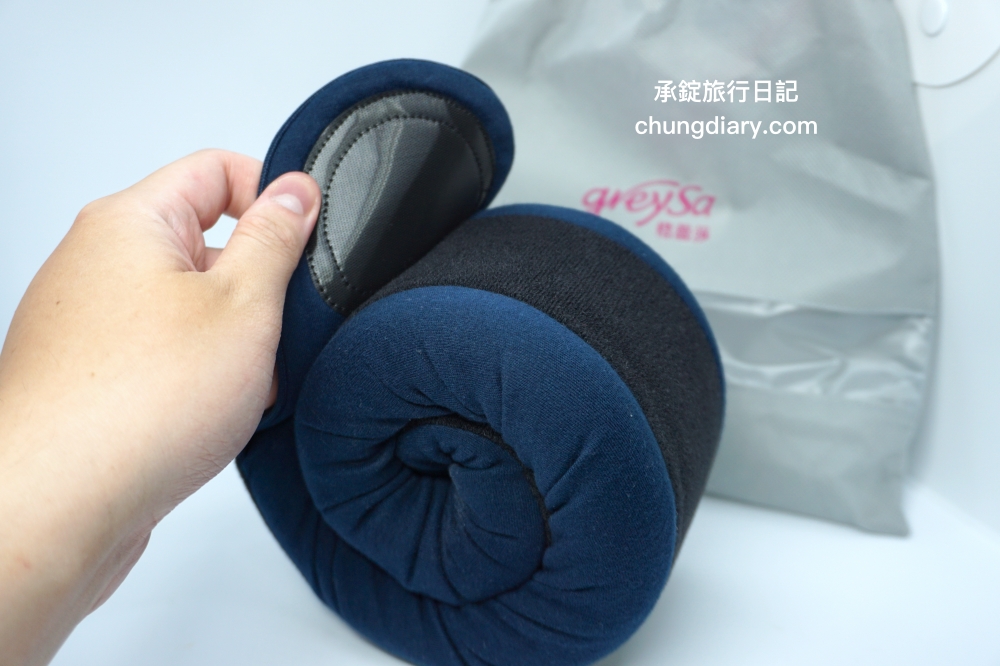 實際使用後會發現,頸枕長條形的設計,戴上頸枕時就可以依照自身頸圍的大小,調整頸枕鬆緊度!比起其他牌的旅行頸枕,格蕾莎頸枕與脖子之間更貼合。