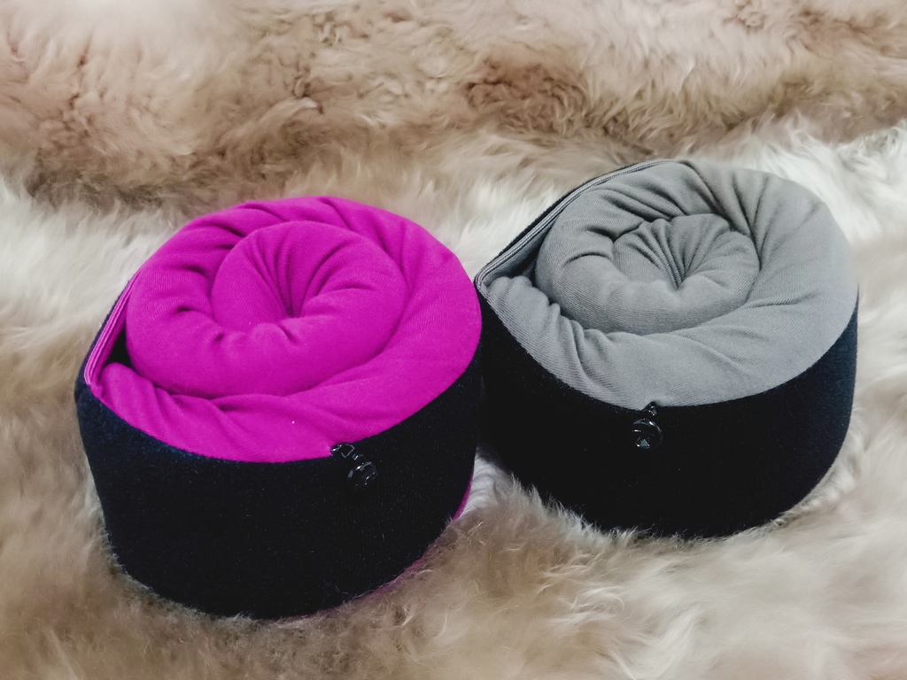 每個頸枕都有隨附束口袋 , 小小一個非常不占位子及空間 , 攜帶方便輕巧