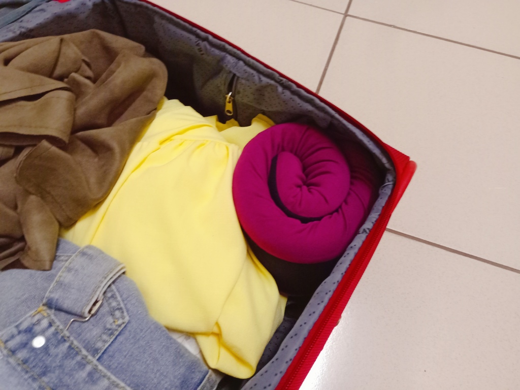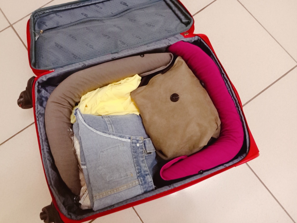 將GreySa格蕾莎全家福旅行頸枕放入行李箱中