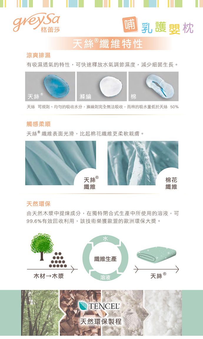 GreySa格蕾莎哺乳護嬰枕的枕頭套是通過國際環保紡織品認證,專為嬌嫩皮膚的嬰兒設計,零污染的生產過程,綠色天然的紡織品認證,讓寶貝用得安心,媽媽也放心