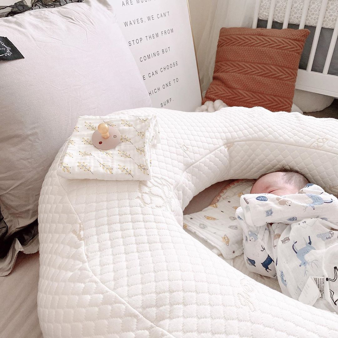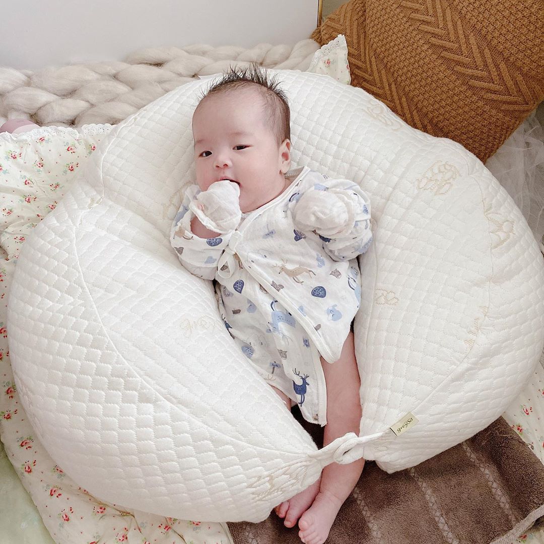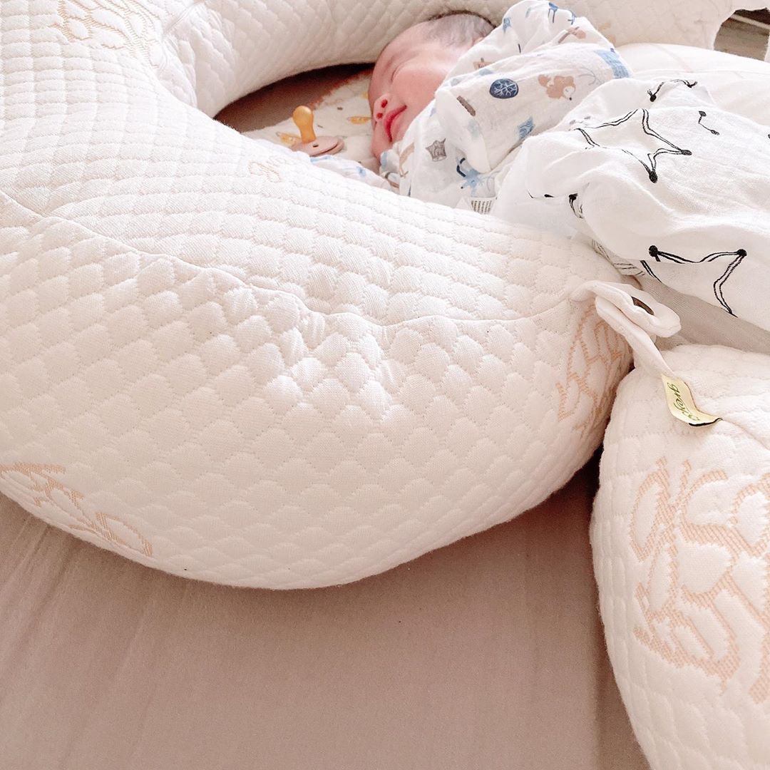 自從從月子中心回家之後,發現這個不只是月亮枕、授乳枕三用護嬰枕!一回家的小嫩嬰,都睡在這個裡面,像安全圍欄一樣的概念包圍著她讓寶寶很有安全感,感覺他睡的很香甜~