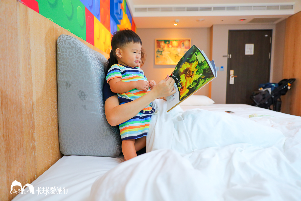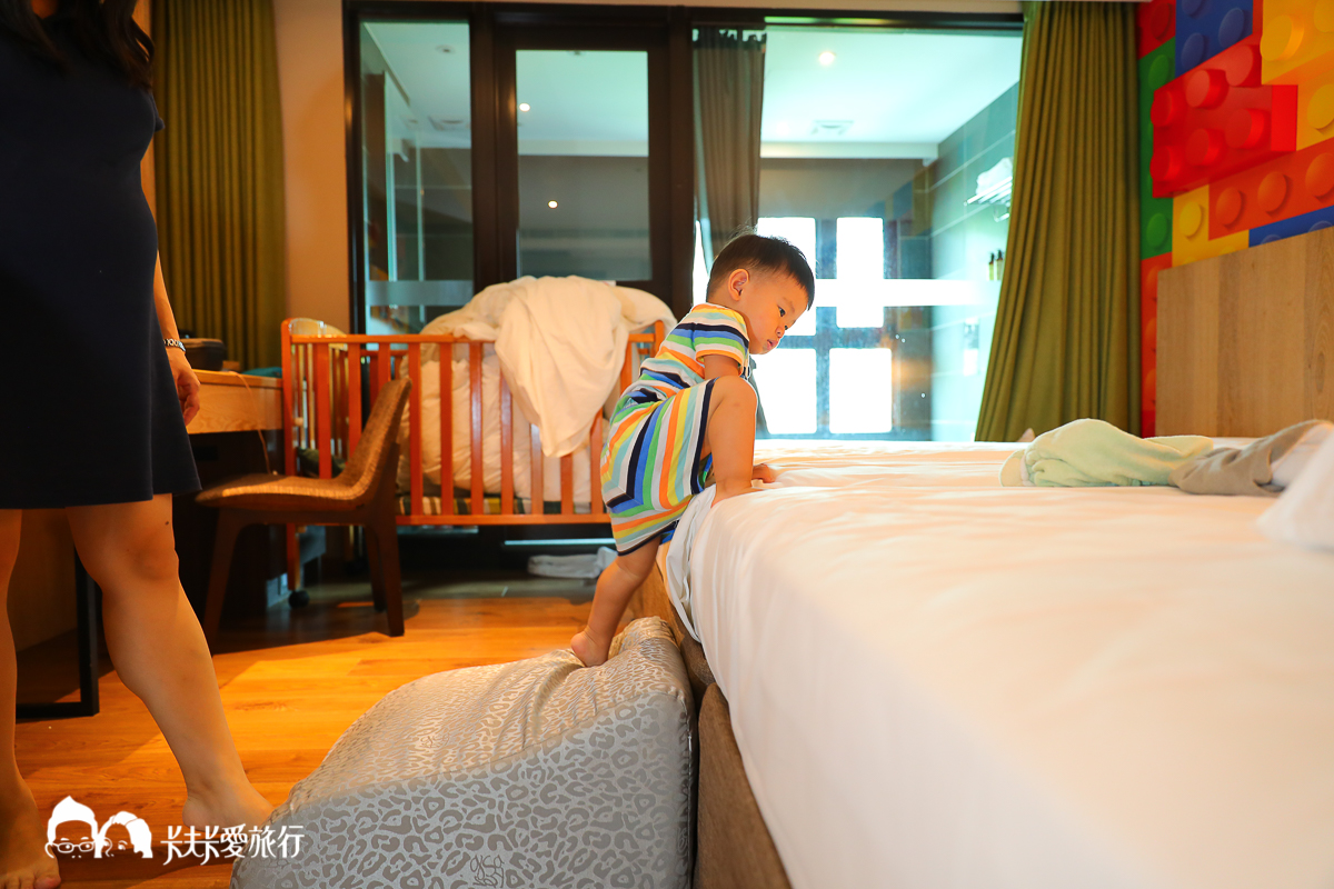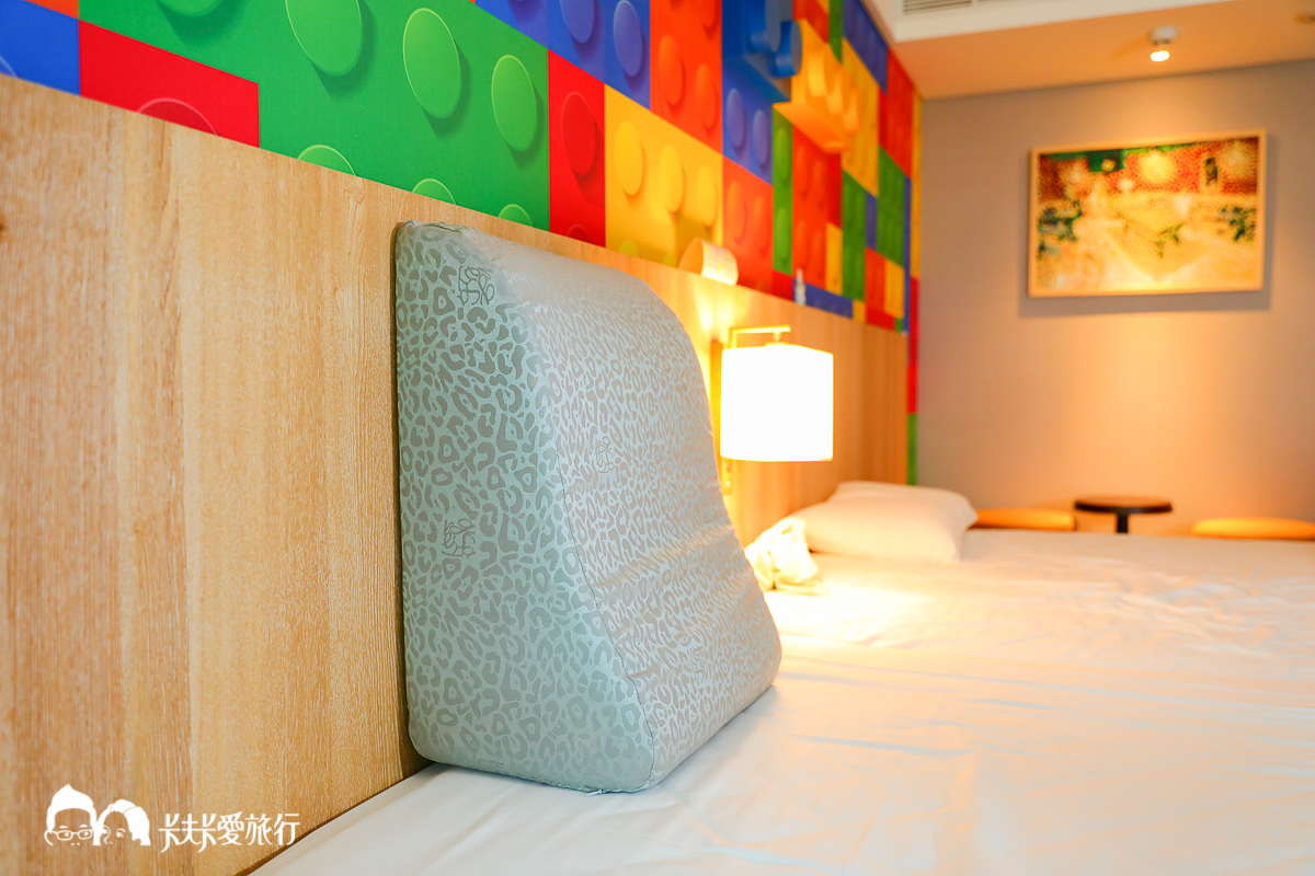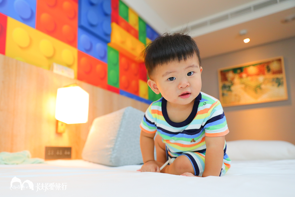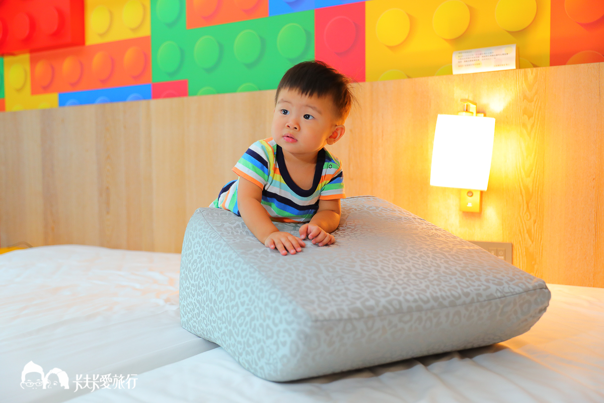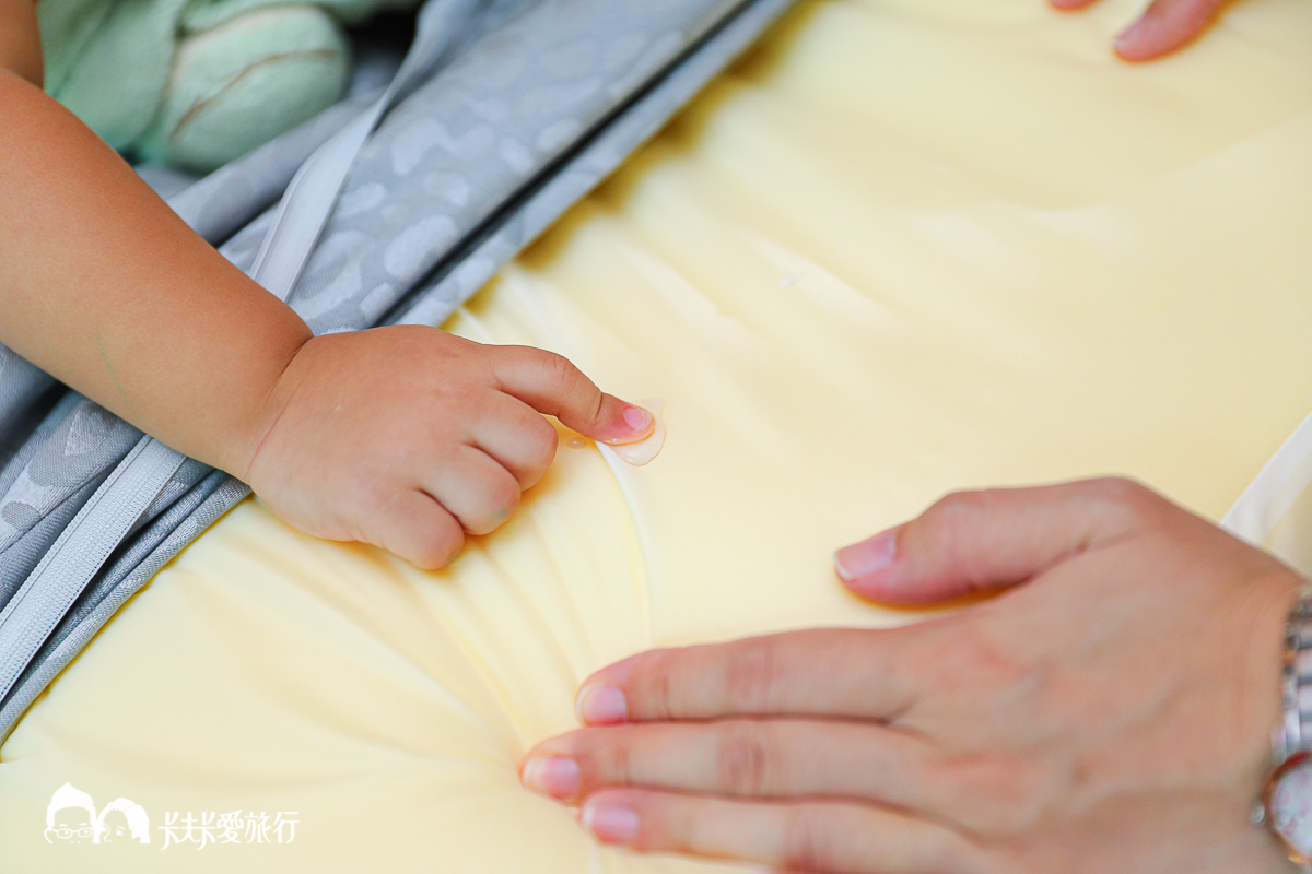 因為床比較高,宥宥無法自己上下(平常會自己上下沙發),這時候抬腿枕就變成他的小樓梯,就可以上下床,減少他的哭鬧或是直接跌落的危險
