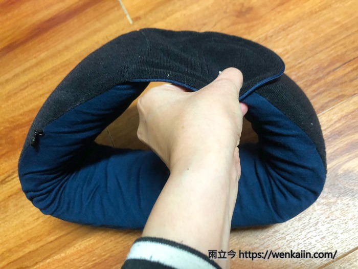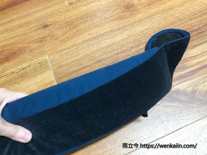 使用的方式就是將枕頸繞在頸部,調整成最舒適的尺寸後,有個可黏的魔鬼粘黏住就OK。別小看這個魔鬼粘,是嬰兒用品級的,小朋友們也可以輕鬆安心的使用。而且可以看到是採特殊規格剪裁,黏扣範圍大、不扎手之外,還可以快速黏取。