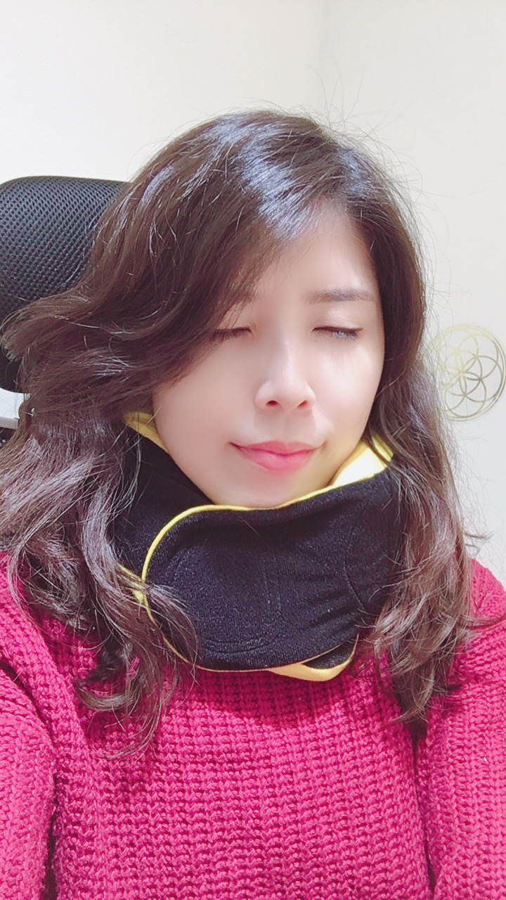 在工作室休息,不想躺床怕睡太久,也可以坐著休息,用頸枕支撐脖子,真的很舒服呢!
