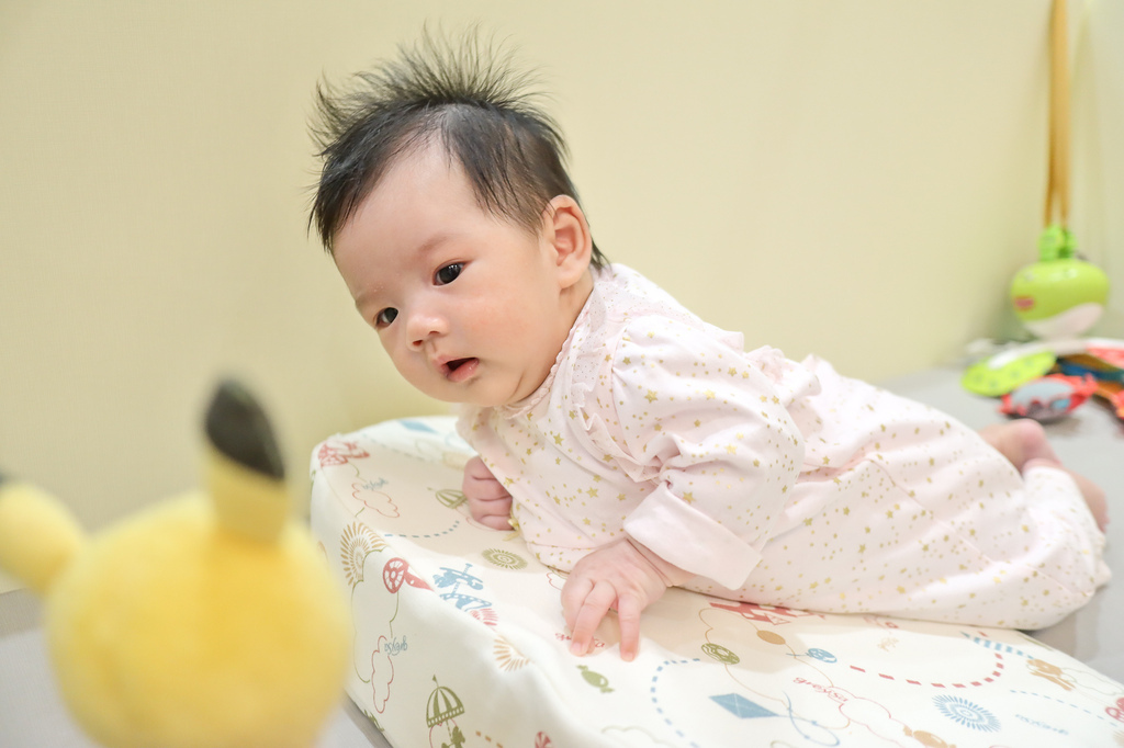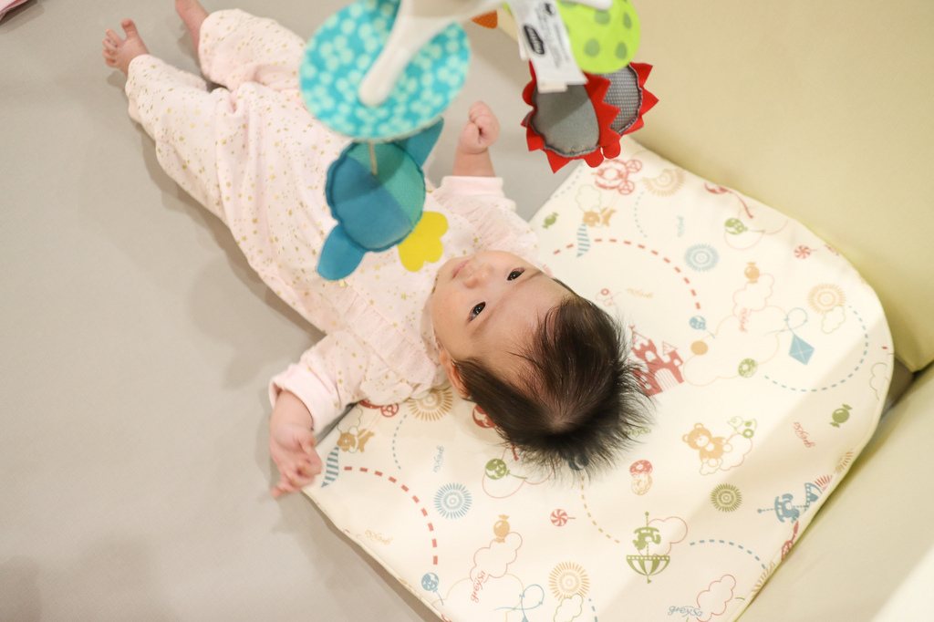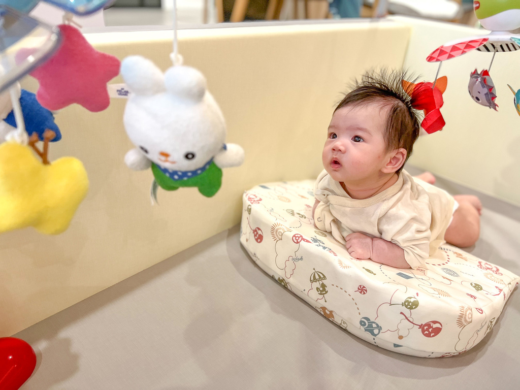 我也喜歡使用母嬰專用仰角枕給寶寶當練抬頭的輔助枕,比直接趴在地上還要久~