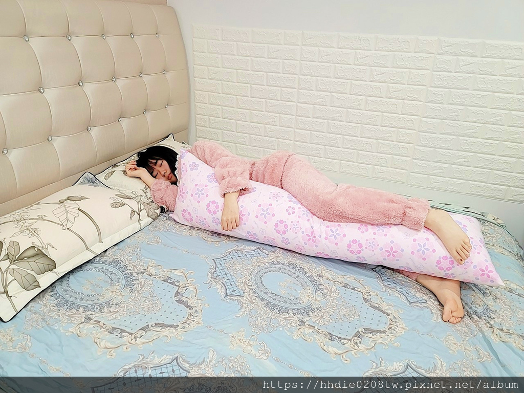 她說她很需要一顆可以側睡的抱枕,我讓她先睡睡看這顆抱枕