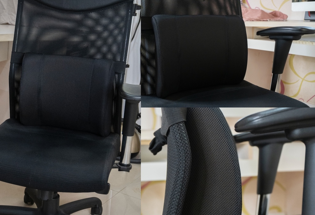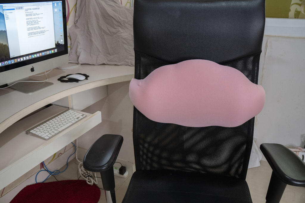 原本使用的電腦椅靠枕,坐起來硬梆梆的,很不舒服,又因為需要電腦的辦公時間很長,