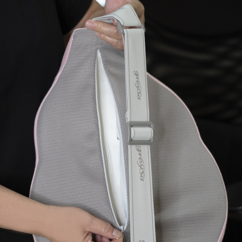 可調式靠枕,滿足重點需求,輕鬆固定位置,彈性伸縮調節織帶,易於穿脫、固定位置。