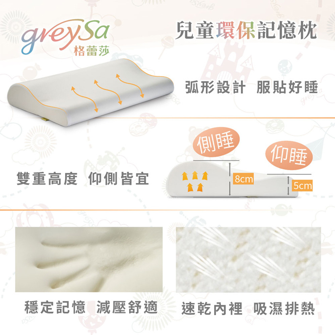 至於枕頭部分,GreySa格蕾莎兒童環保記憶枕