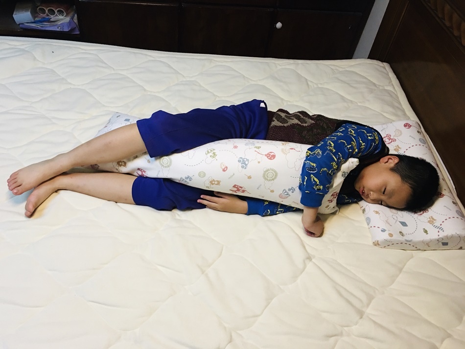 長抱枕可以讓小孩子抱著,睡覺過程保持肩膀平衡對稱