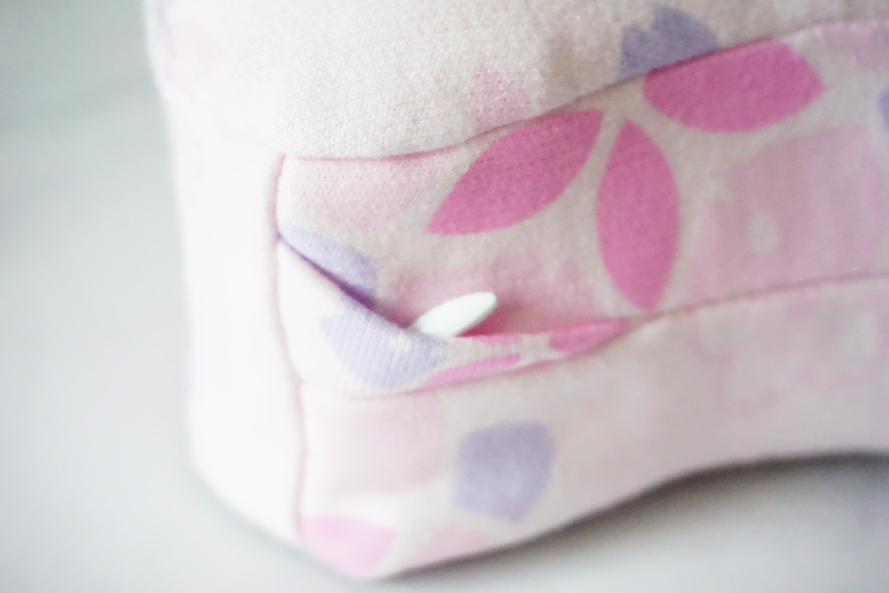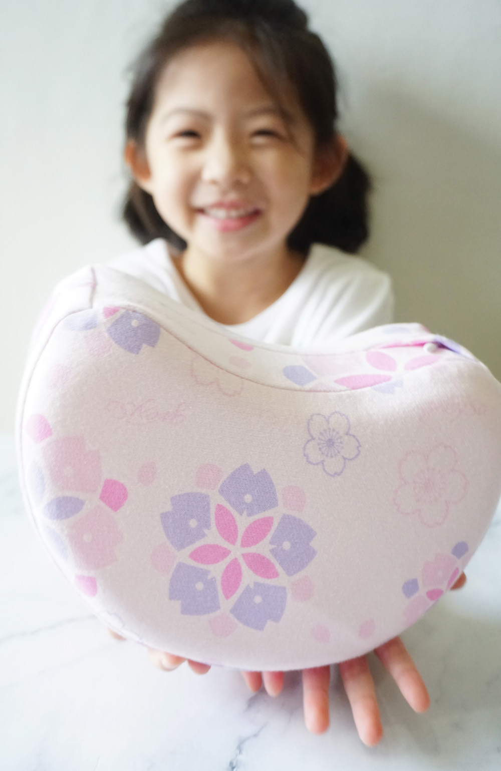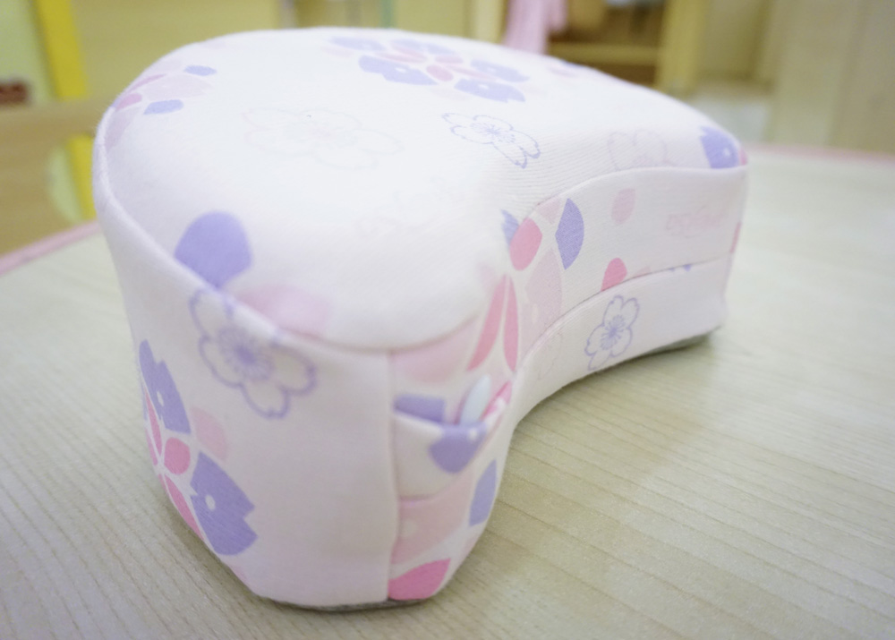 ▼我們選的是小女生們都愛的粉色系,櫻花造型的月兒枕~就是這麼的美~粉色結合紫色的點綴!女兒超愛。