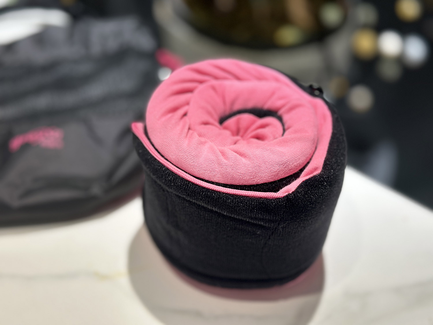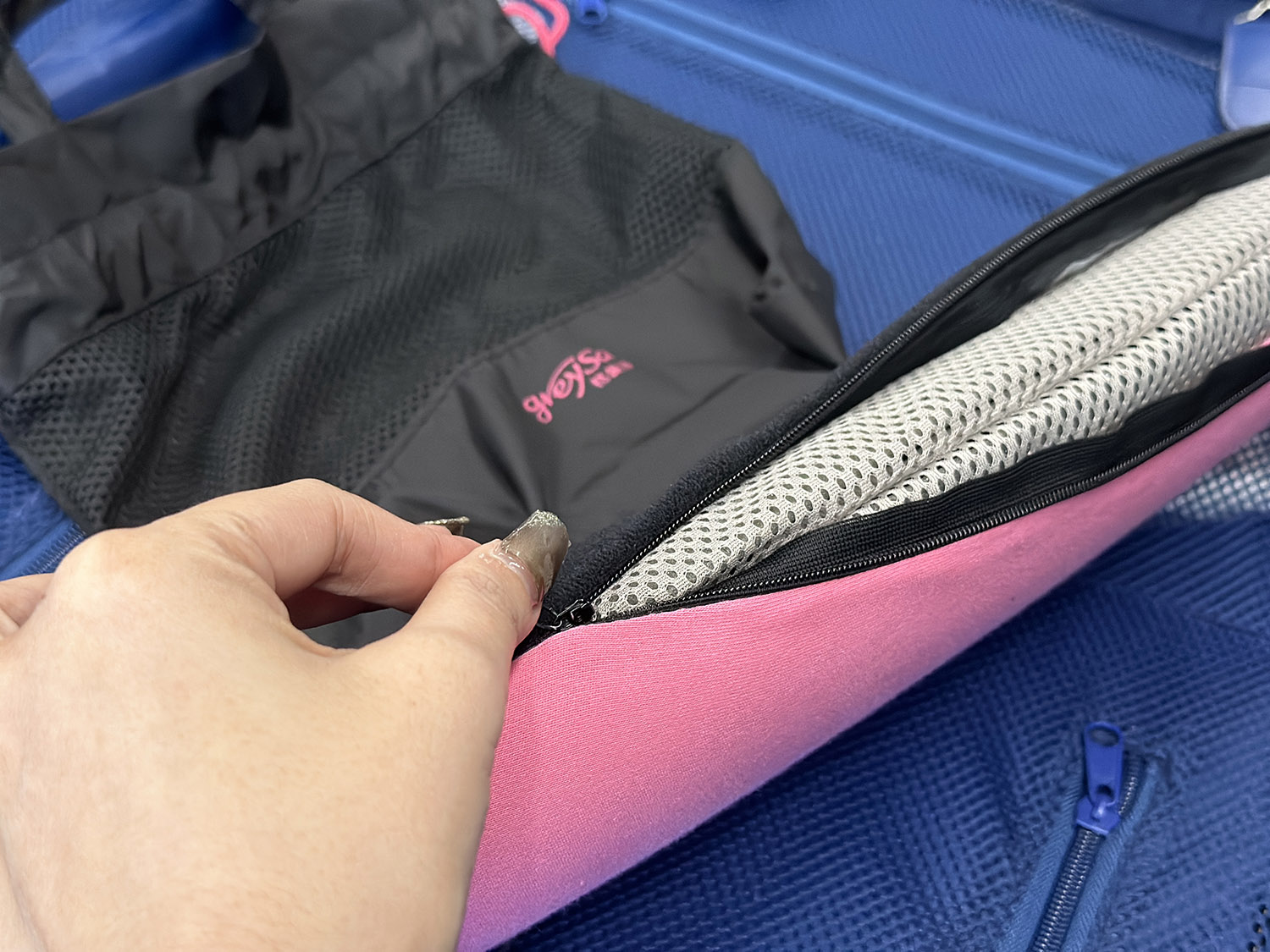 除了舒適之外GreySa格蕾莎全家福旅行頸枕,在收納上也很優秀捲起來就像小蝸牛狀,裝在防塵袋裏小巧輕盈出國旅遊可以輕鬆帶著走,重點是有我最愛的芭比粉紅色。