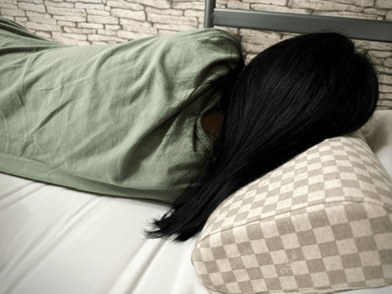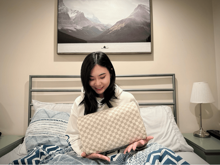 更重要的是它側面是波浪的曲線設計且竹炭添加,躺起來更透氣~出國我常常兩天才洗一次頭⋯(懶),這個躺著頭髮也沒有悶癢的感覺哦!