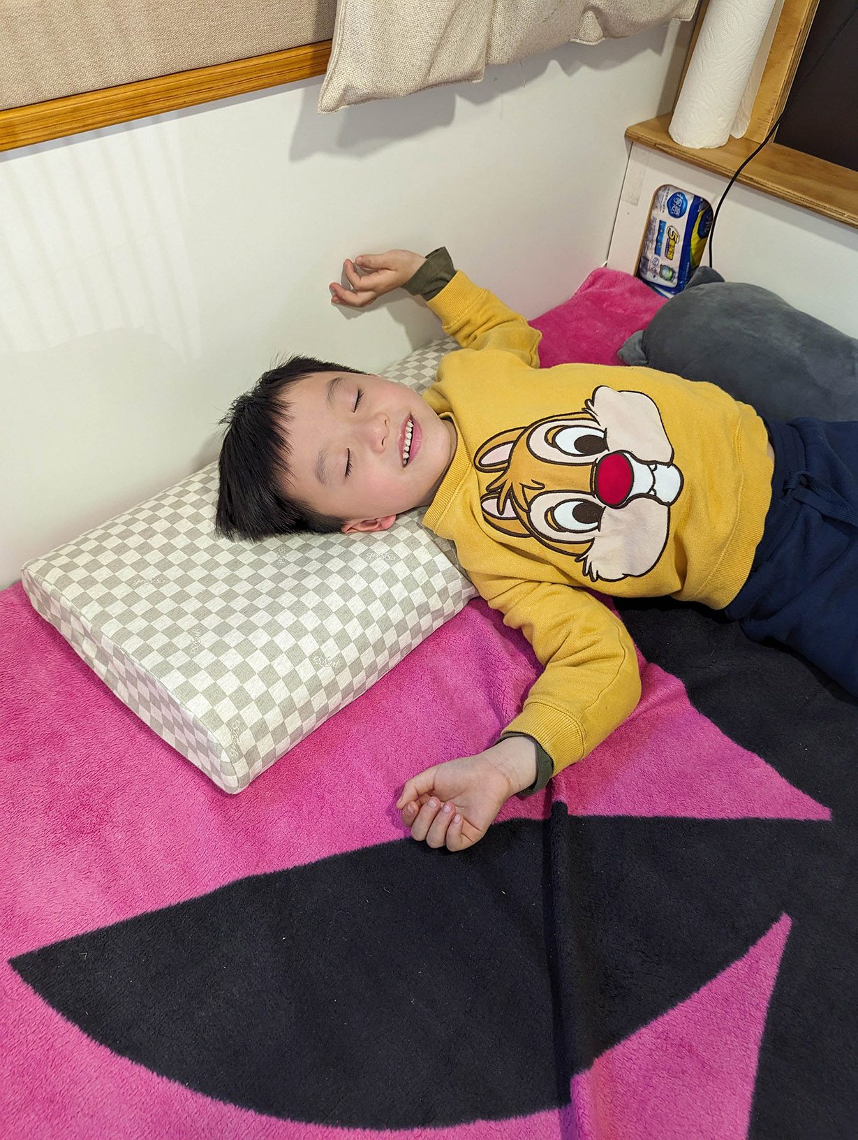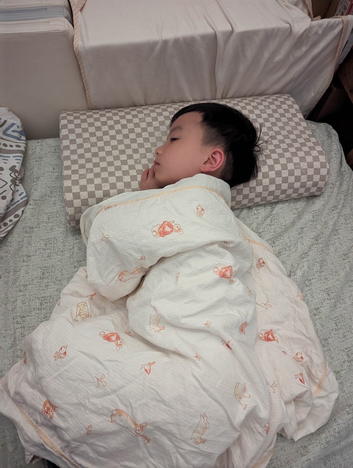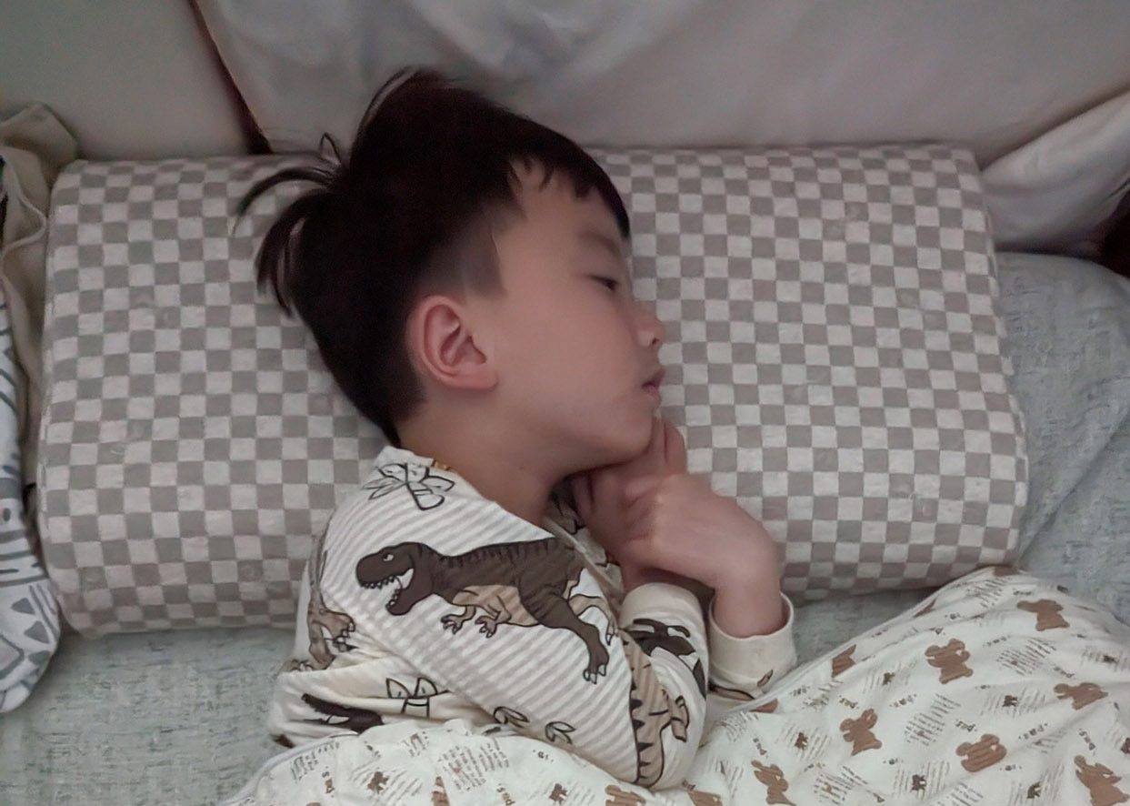 誠哥誠弟兩兄弟在兩歲前其實我不太給枕頭,畢竟他們睡相很差,都會睡到世界旋轉的。隨著誠哥長大來到了大班,夜晚的睡眠已經相當穩定,加上他喜歡側睡,所以有給他一個比較扁的枕頭。不過當媽的總是焦慮孩子的生長發育,怕使用過高或過低的枕頭會影響他的生長發育,所以最近換了GreySa格蕾莎–小學生長曲線記憶枕。